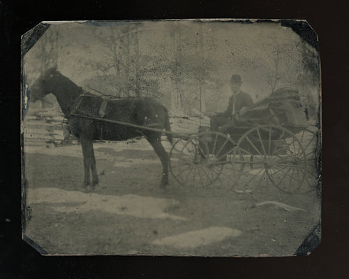 1/6 outdoor tintype photo man riding in horse & buggy - hixson tennessee