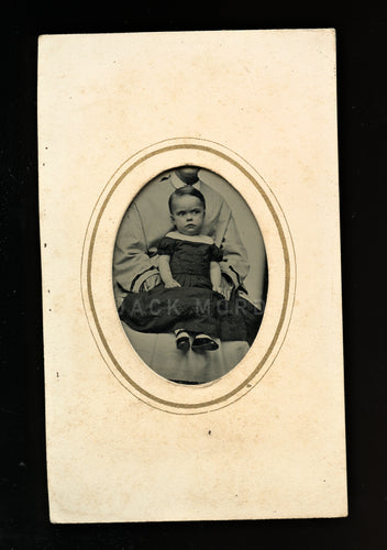 antique 1870s tintype photo funny looking! but cute kid mother hidden by mat