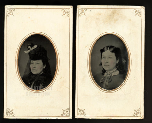 antique tintype set woman in mourning clothes - 1870s photo - taken on same day