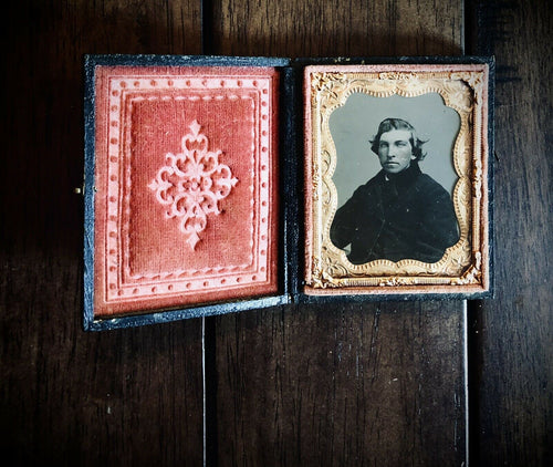 Civil War 1860s Tintype Handsome Man Long Styled Hair Louisiana Photographer?
