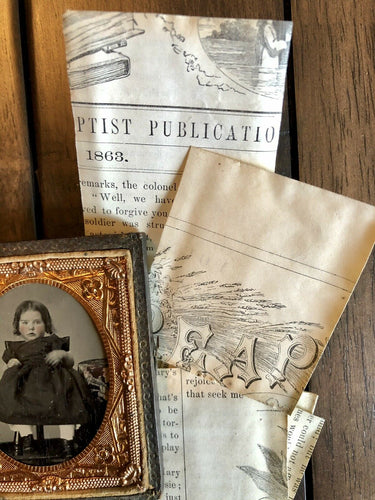 1860s Tintype Cute Little Girl Tinted Cheeks Dated Newspaper Pieces Inside Case