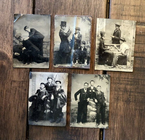 Great Collection Tintype Photos Teen Boys Playing Poker & Having Fun, with Gun