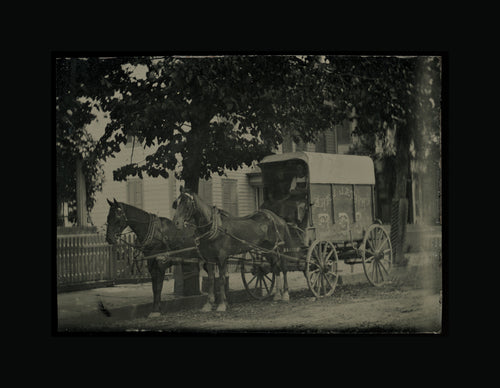 Occupational Tintype Men in Leather Aprons in CRYSTAL LAKE Wagon - Outdoor Photo