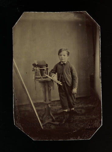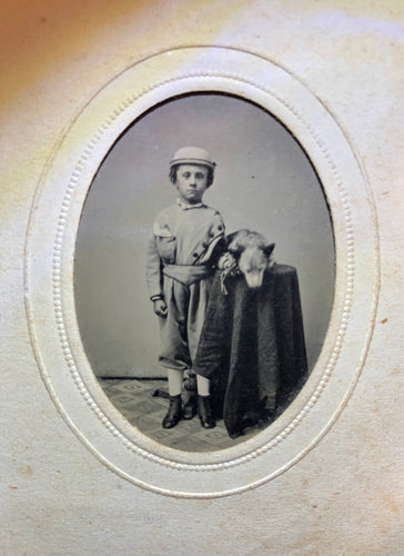 excellent civil war 1860s tintype photo little boy & sleeping dog or coyote pup!