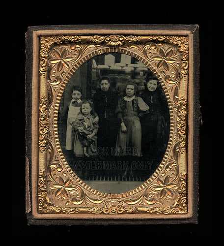 1860s Tintype Photo Factory Occupational Kids, One Girl Holding Large Doll