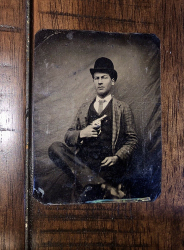 Antique 1/6 Tintype Photo Dime Store Hoodlum Showing Off Gun Hixson Tennessee