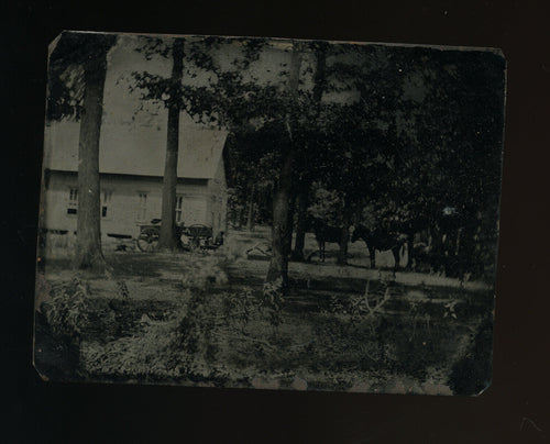 1/4 Outdoor Tintype - House, Horses Wagon Scene 1860s [5981G]