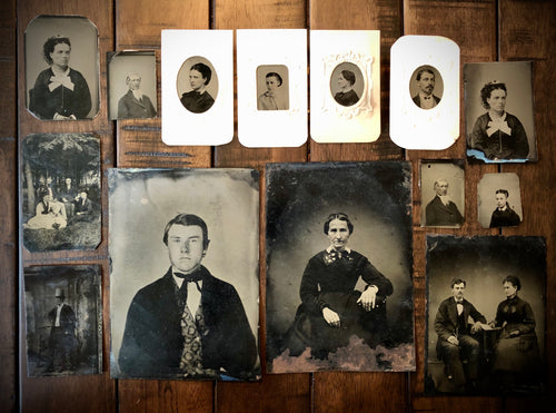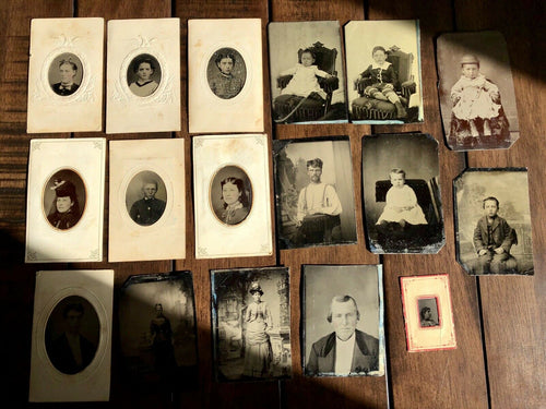 Lot Of 17 Antique 1860s - 1870s Tintype Photos Including Widow and/or Mourning