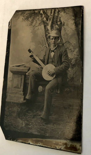 Excellent 1800s Tintype Photo of a Banjo Player / Musician - Antique Music Int