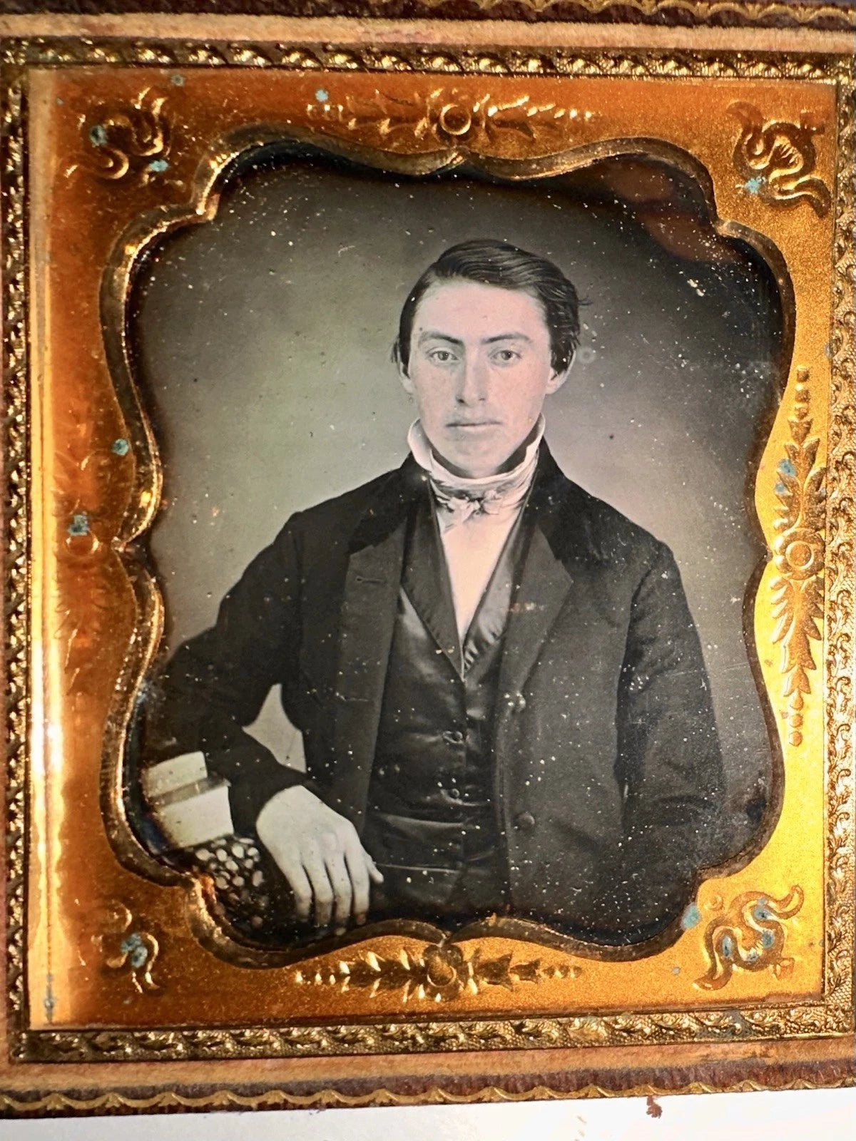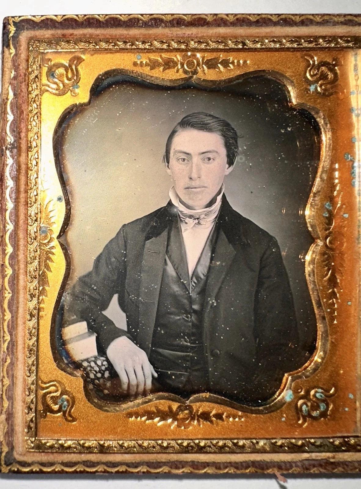 1/6 Daguerreotype Handsome Young Man with Books SEALED 1850s